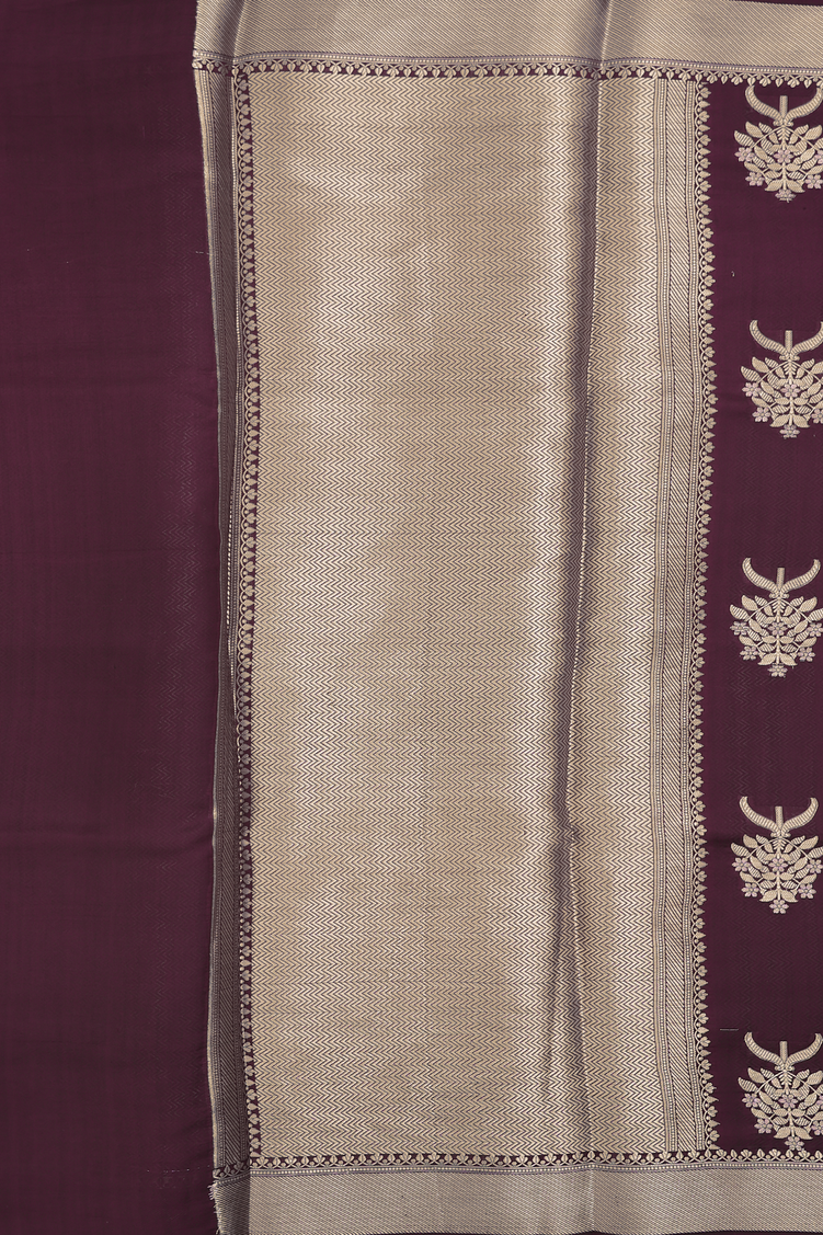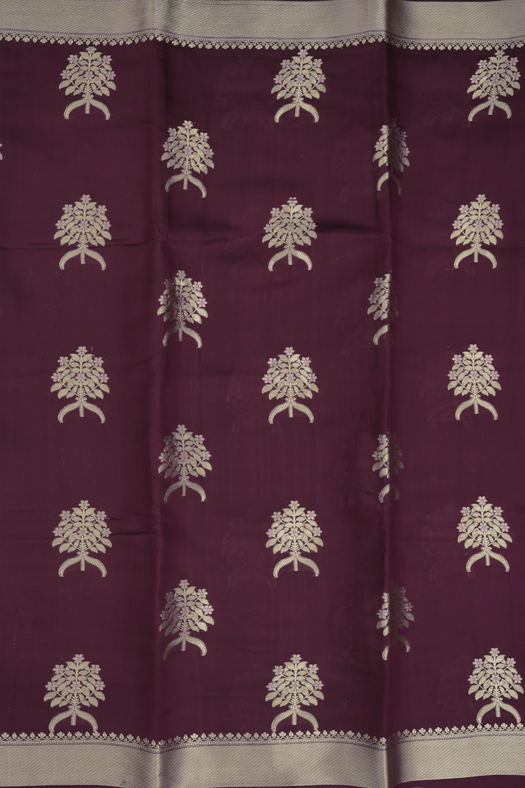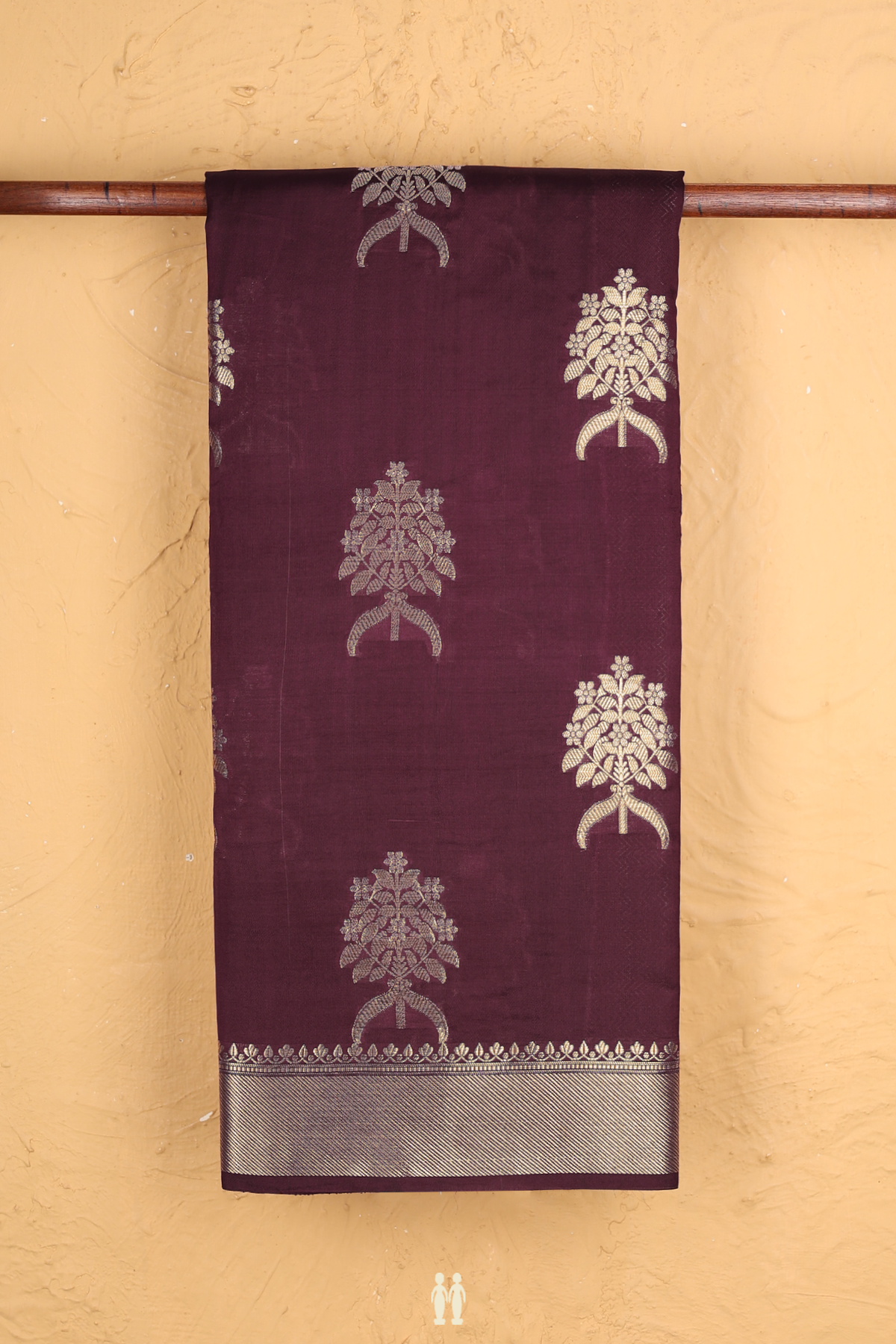 Raw Silk Saree In Plum Purple With Floral Motifs
