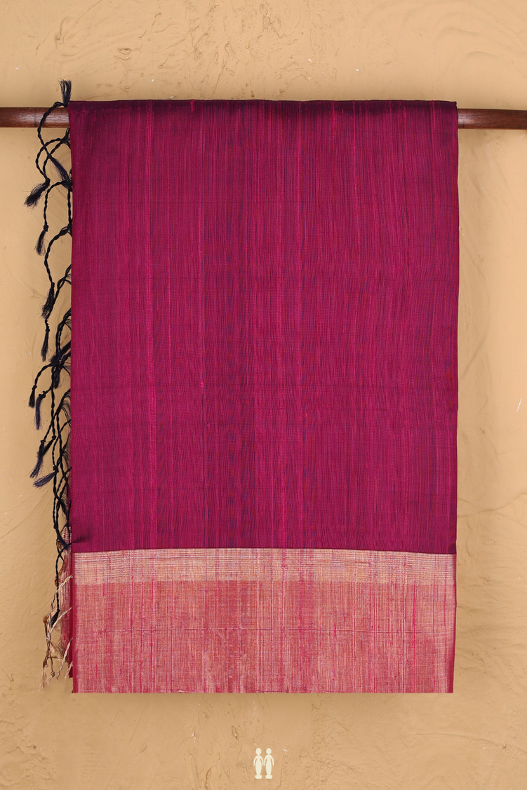 Raw Silk Saree In Plum Purple With Zari Border