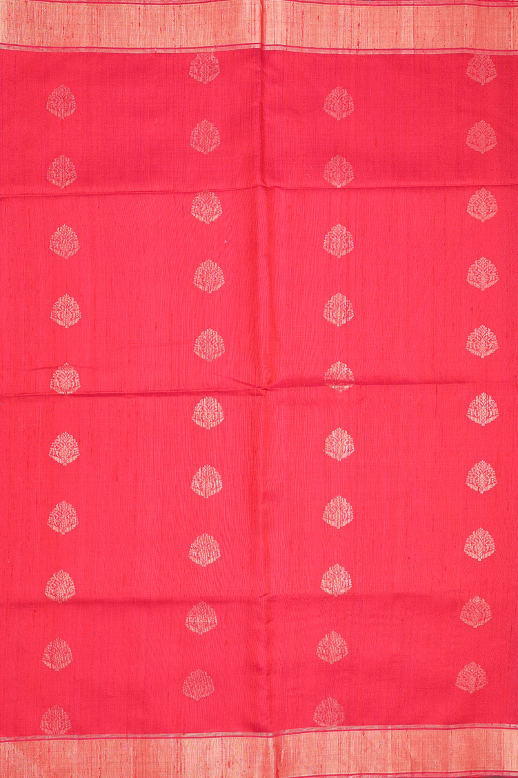 Raw Silk Saree In Red With Zari Buttas