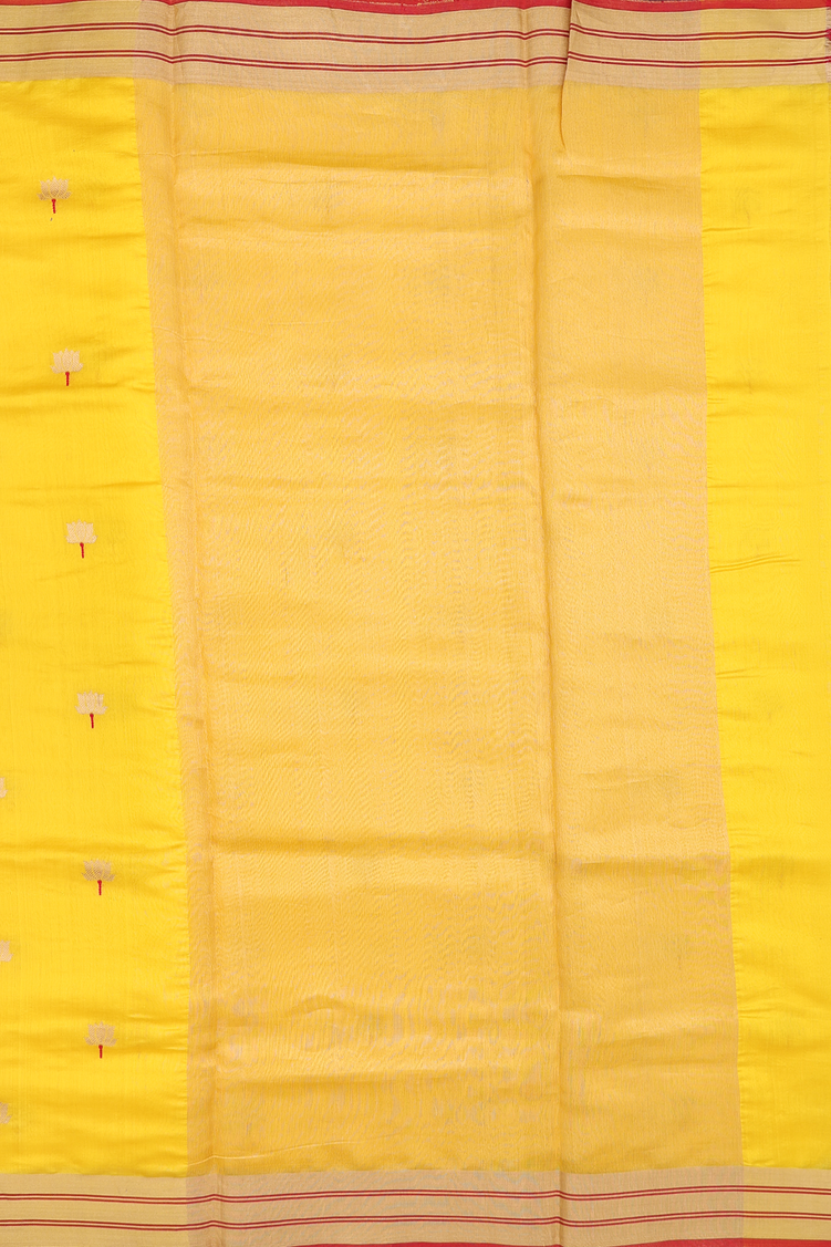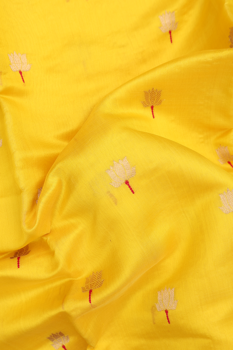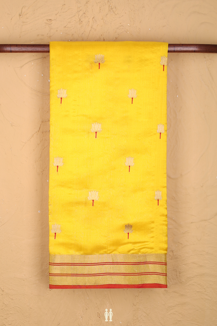 Raw Silk Saree In Saffron Yellow With Floral Buttas