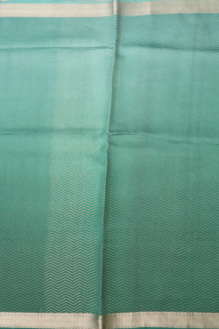 Raw Silk Saree In Shades Of Green With Chevron Design