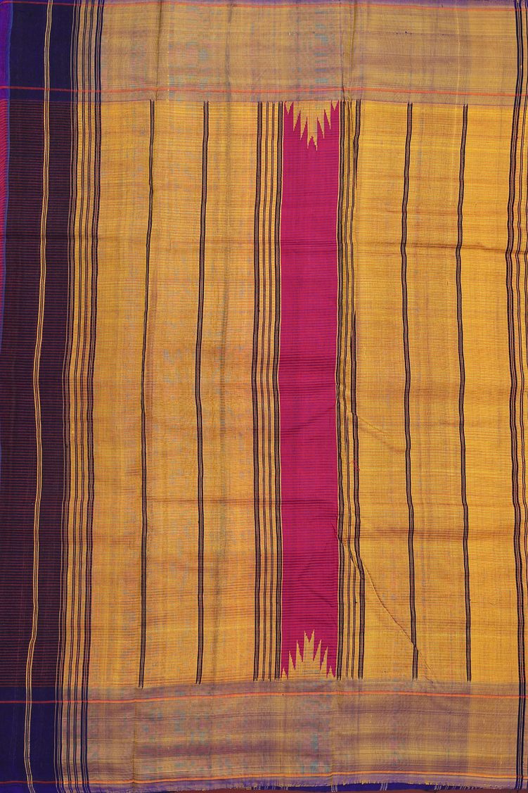 Raw Silk Saree In Yellow And Blue With Checks Design
