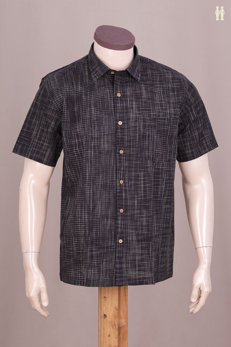 Elevate your wardrobe with this regular collar checks design black cotton shirt, crafted from breathable cotton for all-day comfort. Its classic check pattern paired with a refined collar offers a timeless, sophisticated look suitable for both formal and casual occasions. Perfectly tailored to provide a sharp silhouette, this shirt combines style and ease effortlessly.