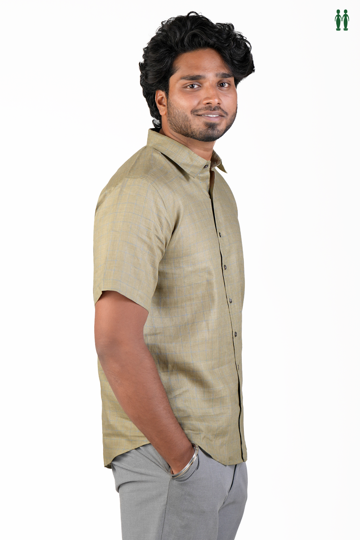Elevate your wardrobe with this olive green linen shirt, featuring a subtle checks design and a classic regular collar. Crafted from breathable linen, it offers comfort and style for both casual and formal occasions. The sophisticated pattern and tailored fit make it a timeless addition to your collection.