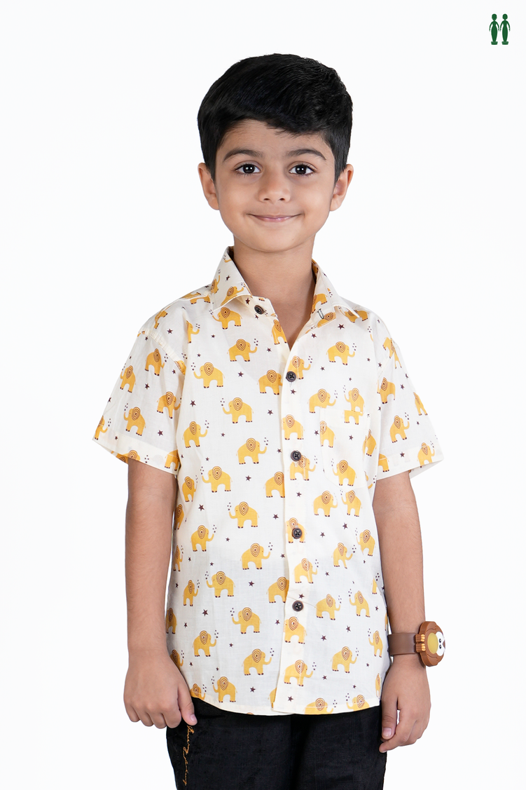Regular Collar Elephant Design White Cotton Shirt