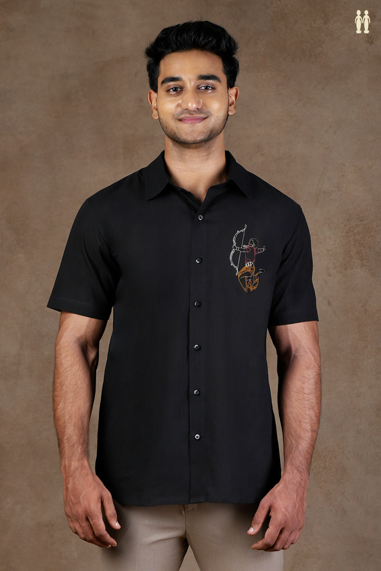 Regular Collar Embroidered Design Black Cotton Shirt