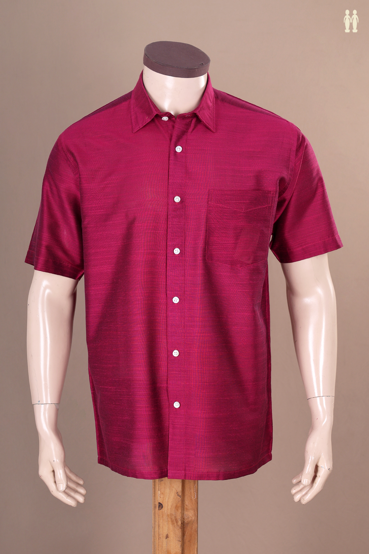 Regular Collar Plain Berry Purple Raw Silk Shirt