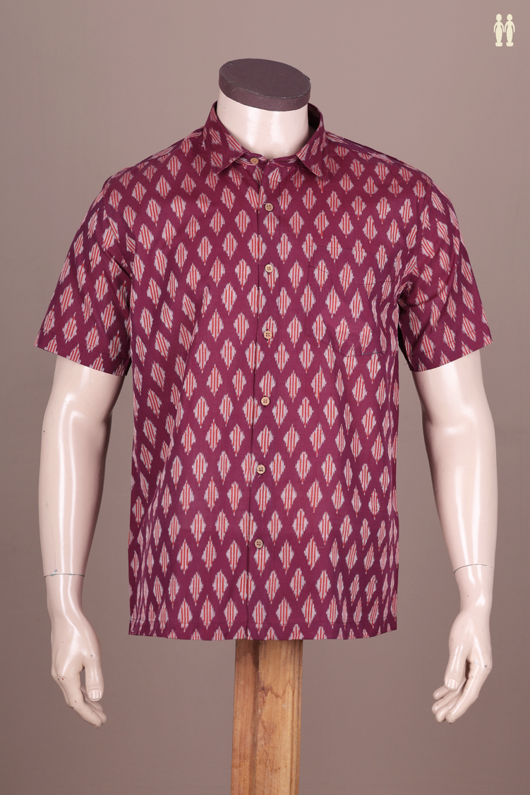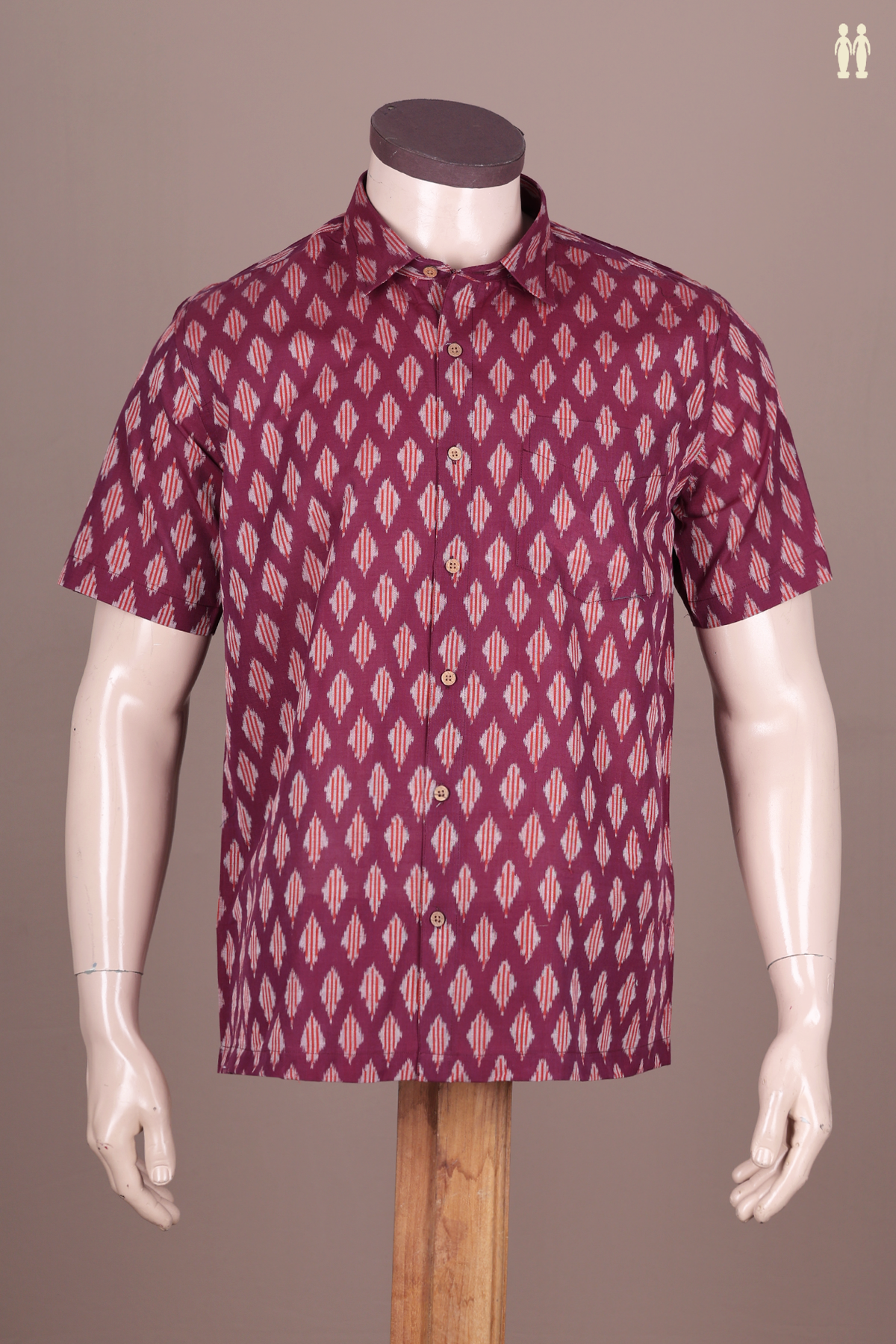 Regular Collar Printed Design Berry Purple Cotton Shirt