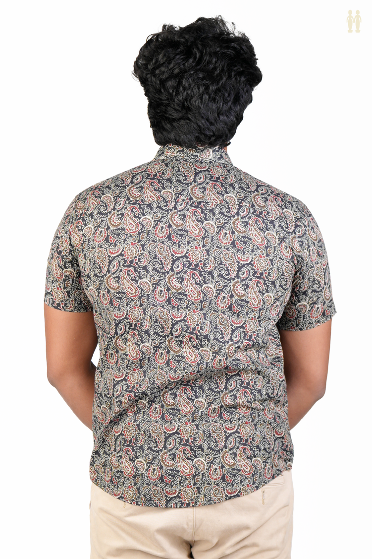 Elevate your wardrobe with this regular collar printed design black cotton shirt, crafted from breathable cotton for all-day comfort. Its refined printed pattern adds a subtle yet stylish detail, perfect for both casual and semi-formal occasions. The classic regular collar ensures a timeless look, making it an essential piece for a sophisticated and versatile style.