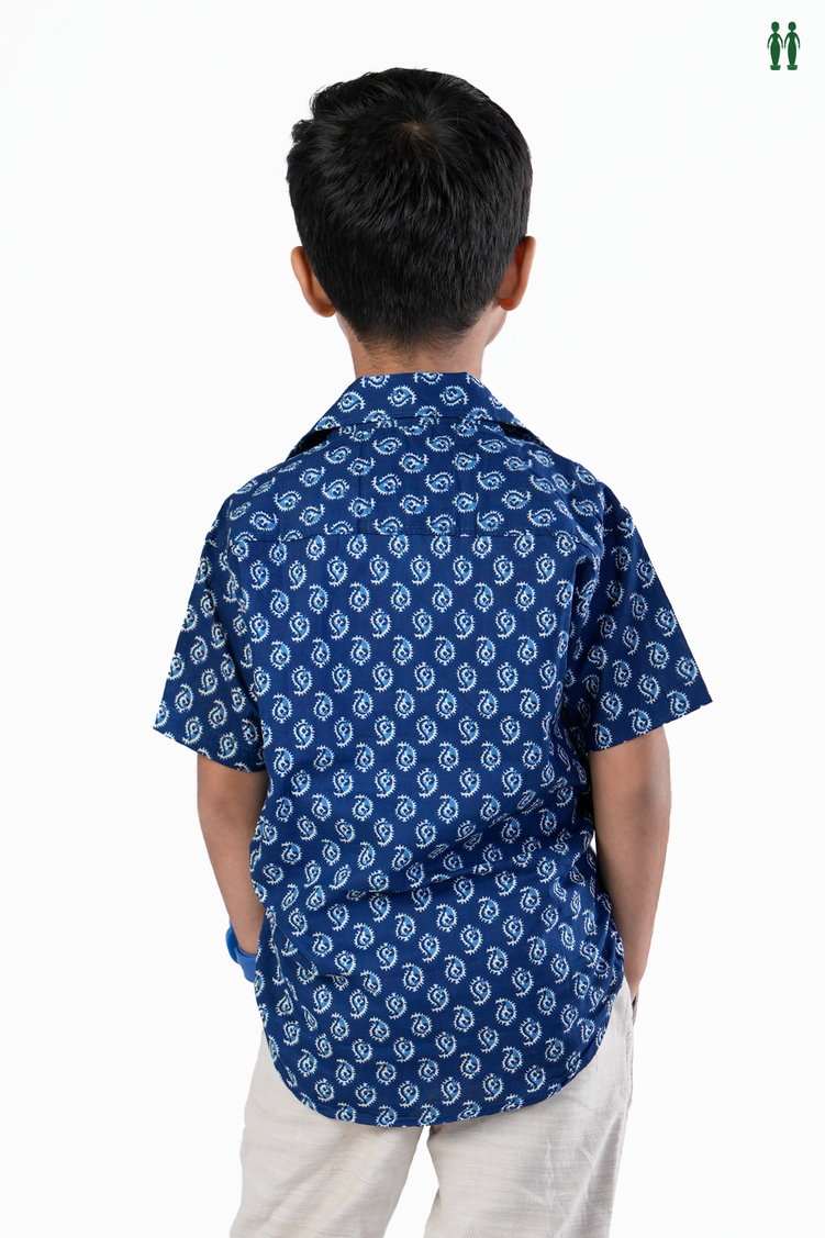 Regular Collar Printed Design Capri Blue Cotton Shirt