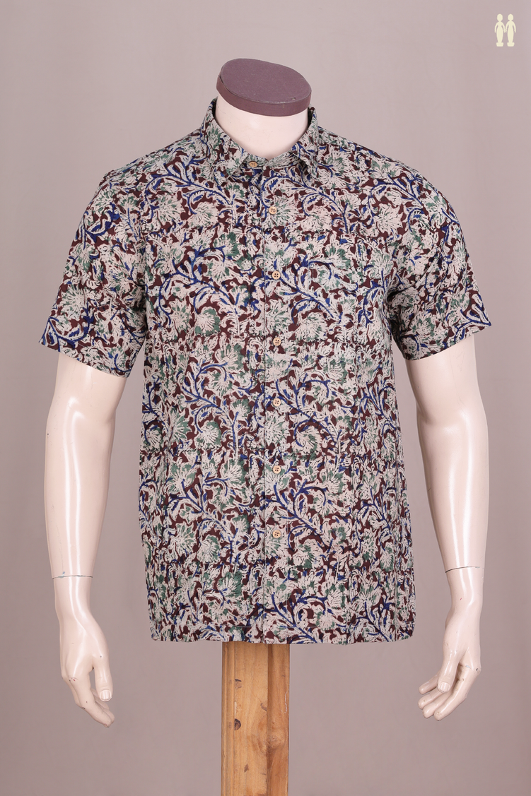 Regular Collar Printed Design Maroon Kalamkari Cotton Shirt
