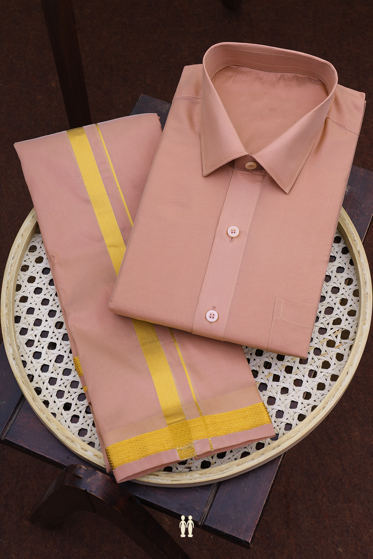 Regular Collar Rose Brown Art Silk Shirt With Dhoti Set