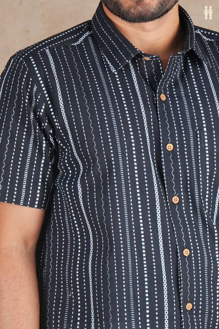 Regular Collar Stripes Design Black Cotton Shirt