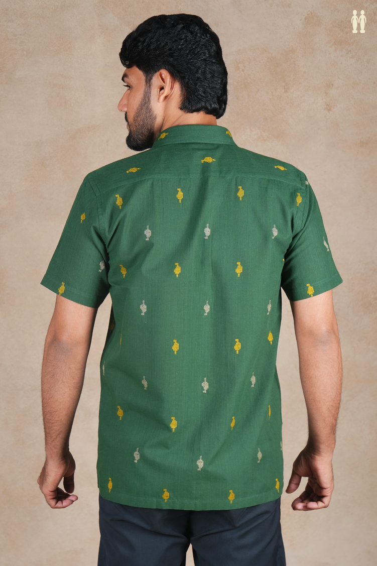 Regular Collar Threadwork Buttas Green Cotton Shirt