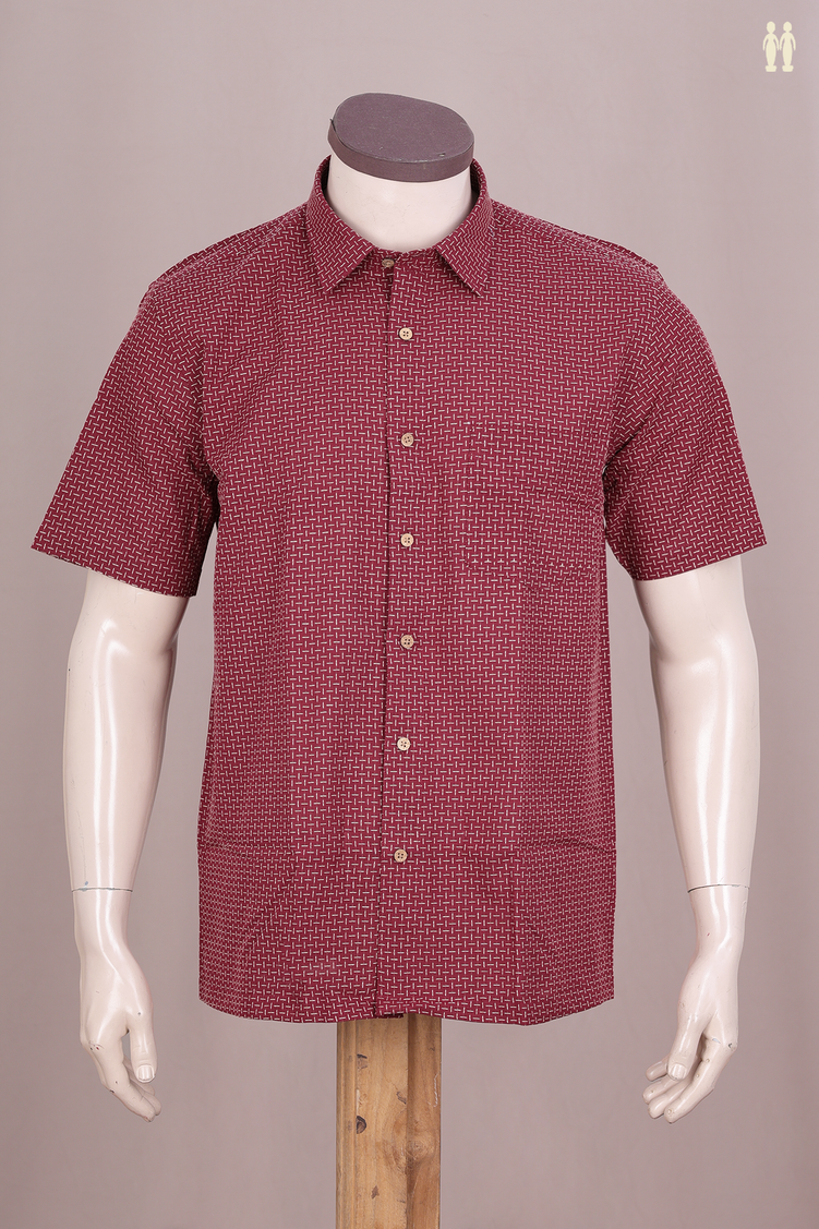 Regular Collar Threadwork Design Red Dobby Cotton Shirt