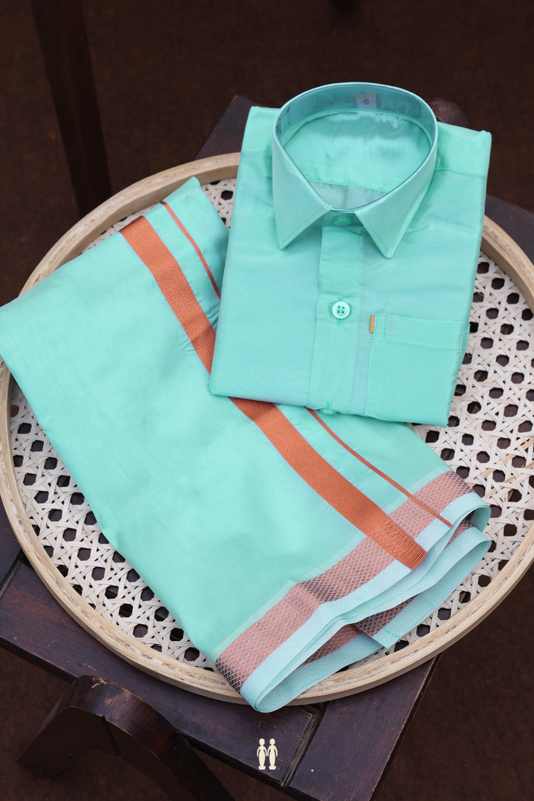 Elevate your traditional attire with this exquisite turkish blue art silk shirt paired with a convenient velcro dhoti. The regular collar design offers timeless appeal while the lustrous art silk fabric provides a refined sheen. Perfect for cultural celebrations and special occasions, this ensemble combines classic aesthetics with modern convenience for effortless dressing.
