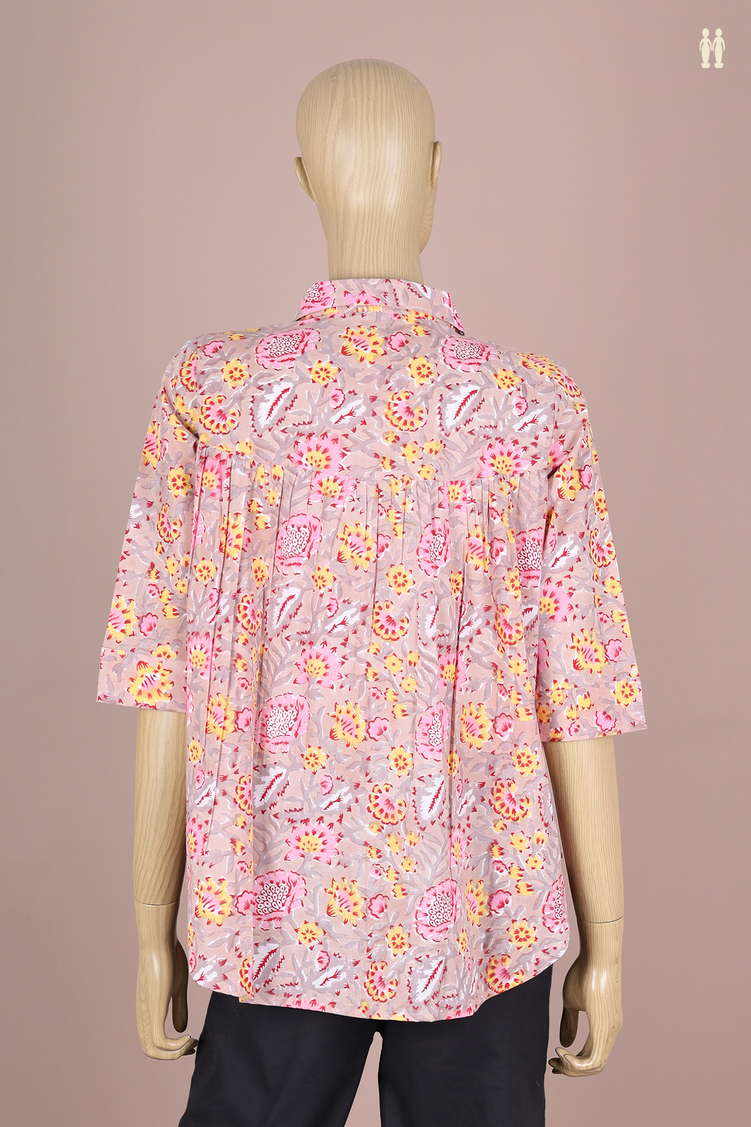 Elevate your wardrobe with this brown cotton short top, featuring a refined regular neck and a delicate floral design. Crafted from breathable cotton, it ensures comfort while adding a touch of understated elegance to your everyday style. Perfect for effortless sophistication in any casual setting.