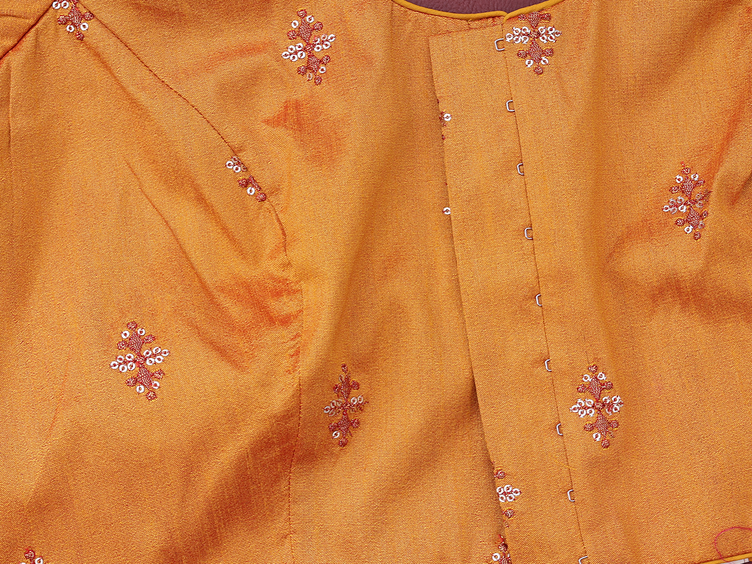 Round Neck Allover Buttas Orange Semi Raw Silk Readymade Blouse