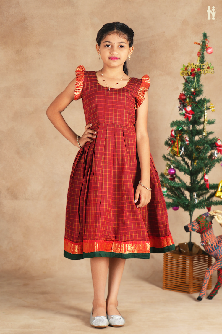 Elevate your everyday wardrobe with this refined cotton frock, featuring a timeless round neckline and sophisticated checked pattern in rich red tones. Crafted from breathable cotton fabric, this versatile piece offers both comfort and elegance for casual outings or relaxed gatherings. The classic checks add visual interest while maintaining an understated charm, making it an essential addition to any discerning woman's collection. Perfect for layering or wearing solo, this frock transitions effortlessly from day to evening wear.