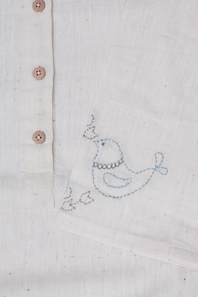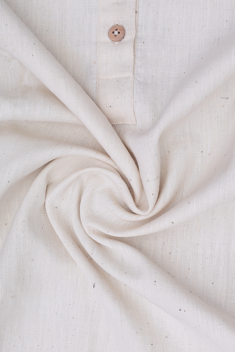 Round Neck Plain Beige Handspun Cotton Long Kurta