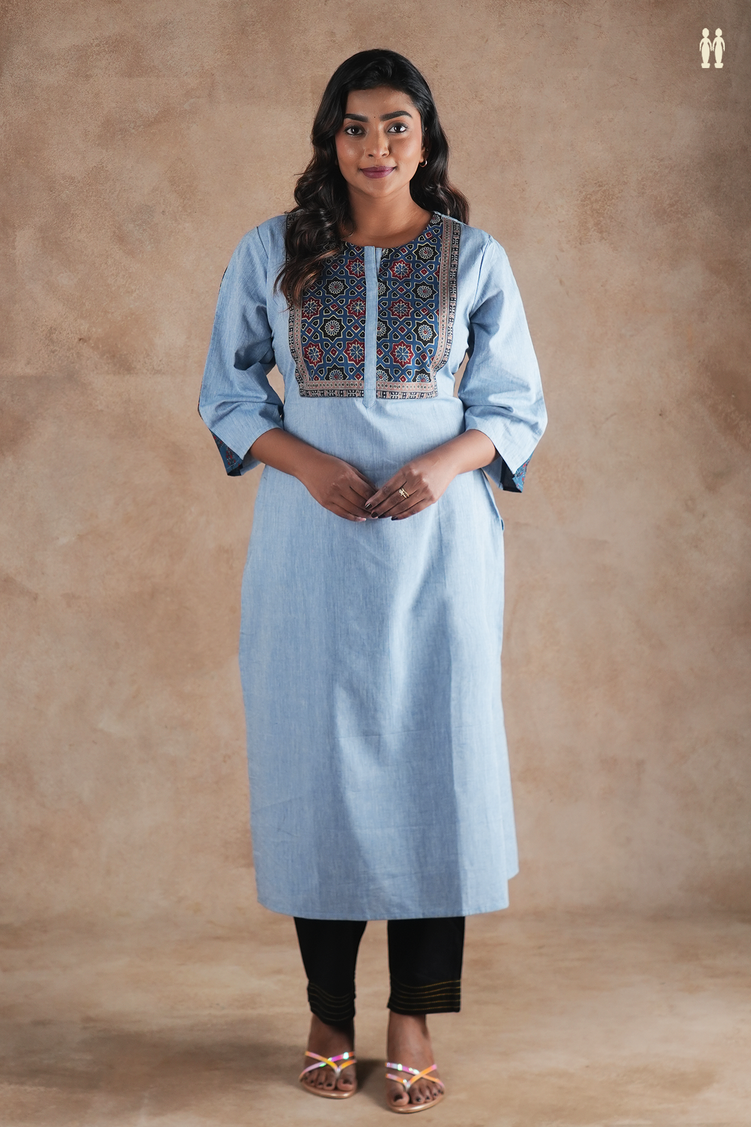 Elevate your everyday wardrobe with this timeless round neck kurta, crafted from premium cotton in a serene blue shade. The relaxed long silhouette offers effortless comfort and versatility, seamlessly transitioning from casual gatherings to semi-formal occasions. The plain design ensures easy pairing with traditional bottoms or contemporary pieces, making it an essential addition to any ethnic collection. Perfect for those who appreciate understated elegance and breathable fabric that moves with you throughout the day.