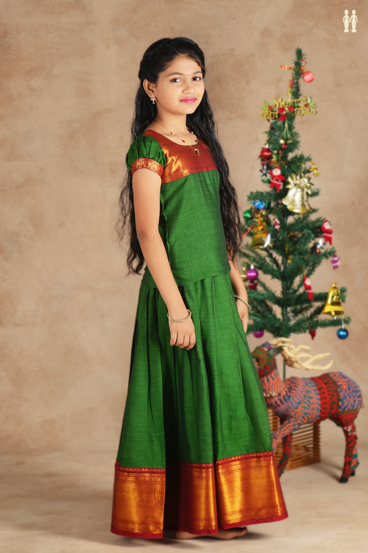 Round Neck Plain Forest Green Cotton Pavadai Sattai