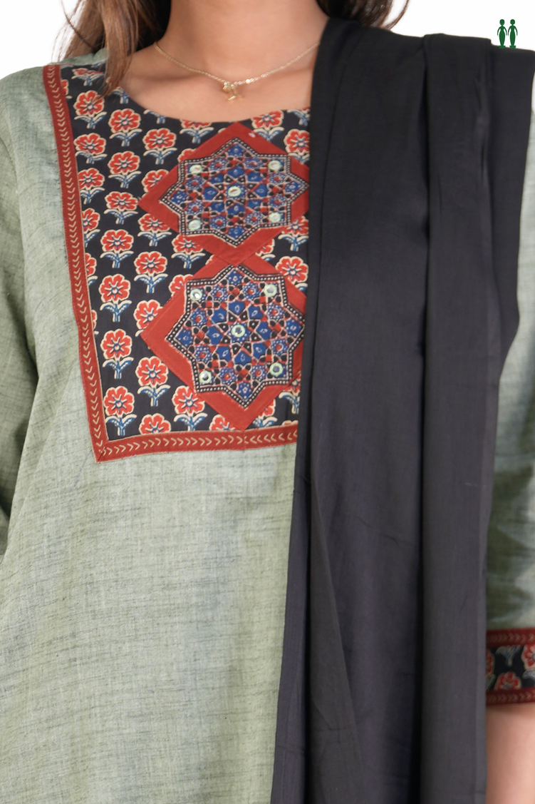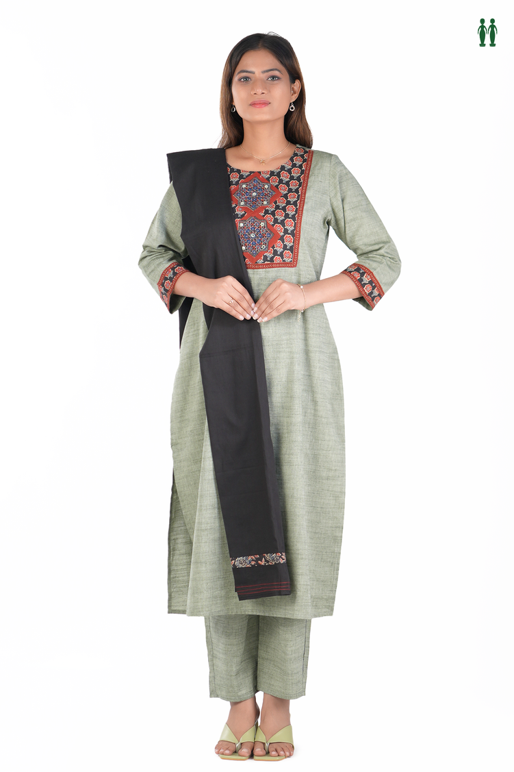 Embrace timeless elegance with this refined round neck cotton salwar set in a serene green hue. Crafted from premium cotton fabric, this ensemble offers exceptional comfort and breathability, making it ideal for everyday wear or casual gatherings. The understated design features a classic round neckline that flatters all face shapes, while the plain aesthetic allows for versatile styling with traditional jewelry and accessories. Perfect for those who appreciate minimalist sophistication, this salwar set combines quality craftsmanship with effortless grace, ensuring you look polished and put-together with minimal effort.