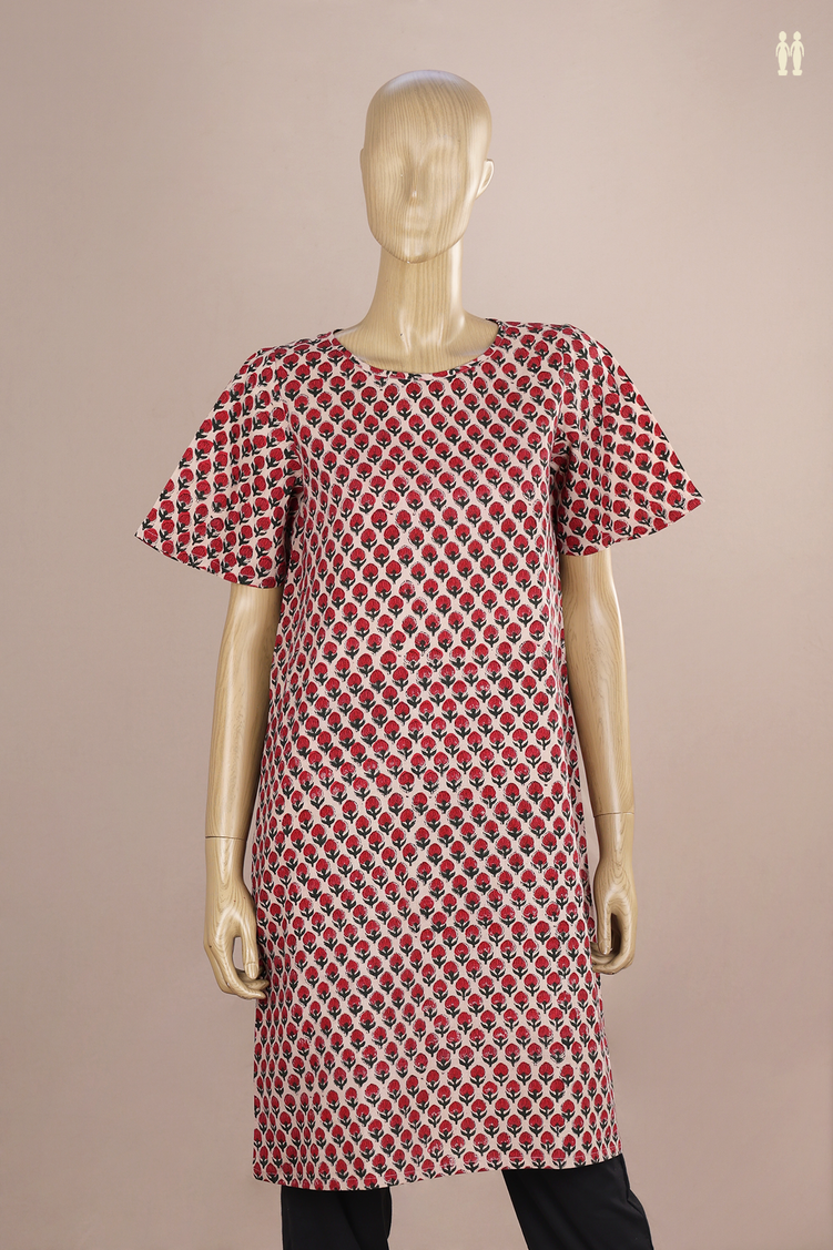 Round Neck Printed Design Beige Jaipur Cotton Long Kurta