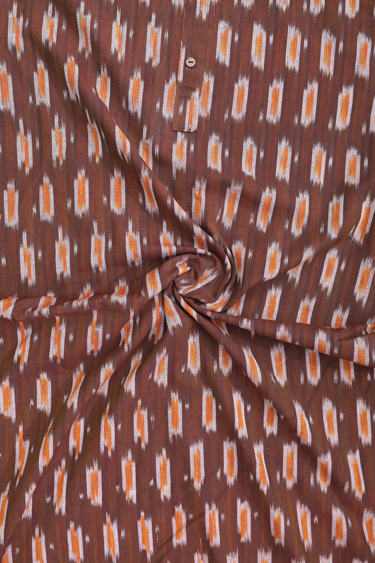 Embrace timeless elegance with this exquisite brown ikat cotton nightie, where traditional craftsmanship meets contemporary comfort. The round neckline offers a flattering silhouette, while the intricate printed ikat design showcases authentic artisanal detailing. Crafted from breathable cotton, this piece provides gentle comfort for restful nights. Perfect for those who appreciate the refined beauty of handcrafted textiles and seek everyday luxury that honors heritage and quality.
