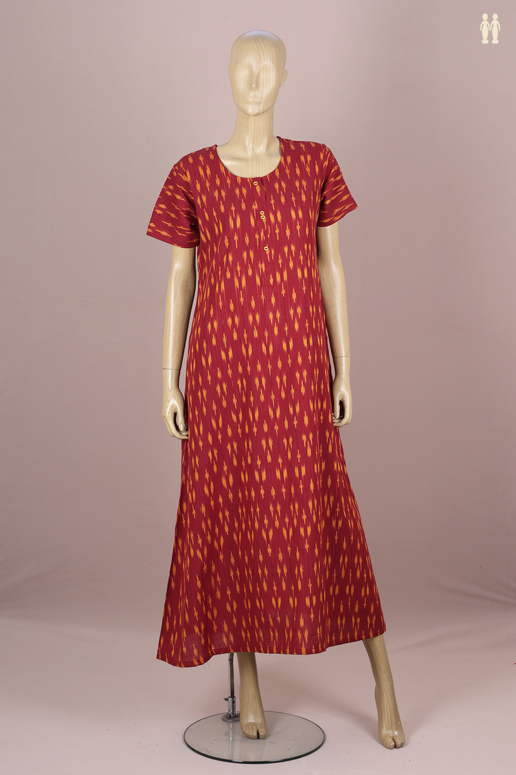Round Neck Printed Design Red Ikat Cotton Nightie