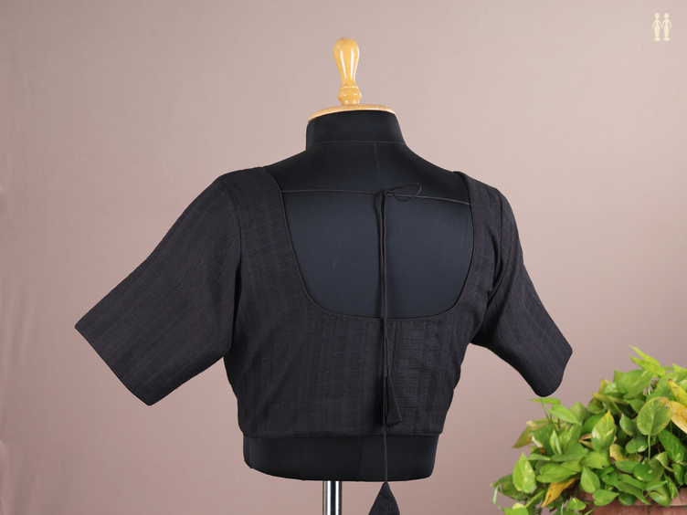 Round Neck Threadwork Design Black Raw Silk Readymade Blouse