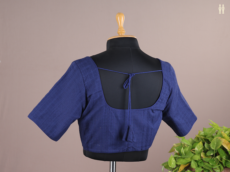 Round Neck Threadwork Design Blue Raw Silk Readymade Blouse