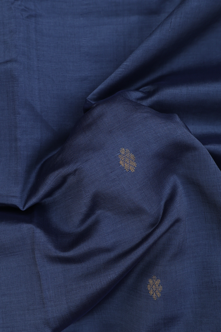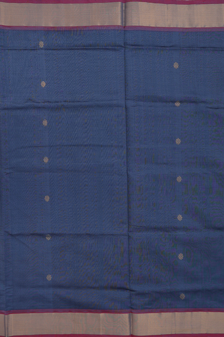 Semi Silk Cotton Saree In Pigeon Blue With Zari Buttas