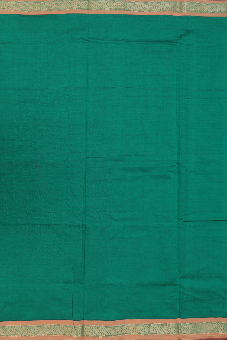 Semi Silk Cotton Saree In Emerald Green With Contrast Border