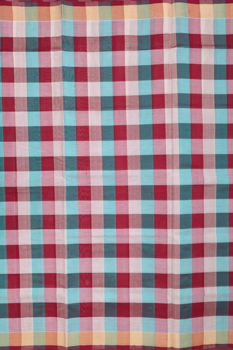 Semi Silk Cotton Saree In Multicolor With Checks Design