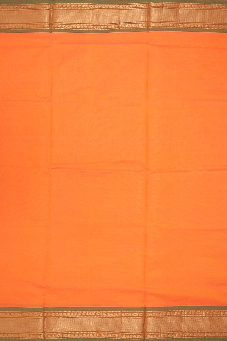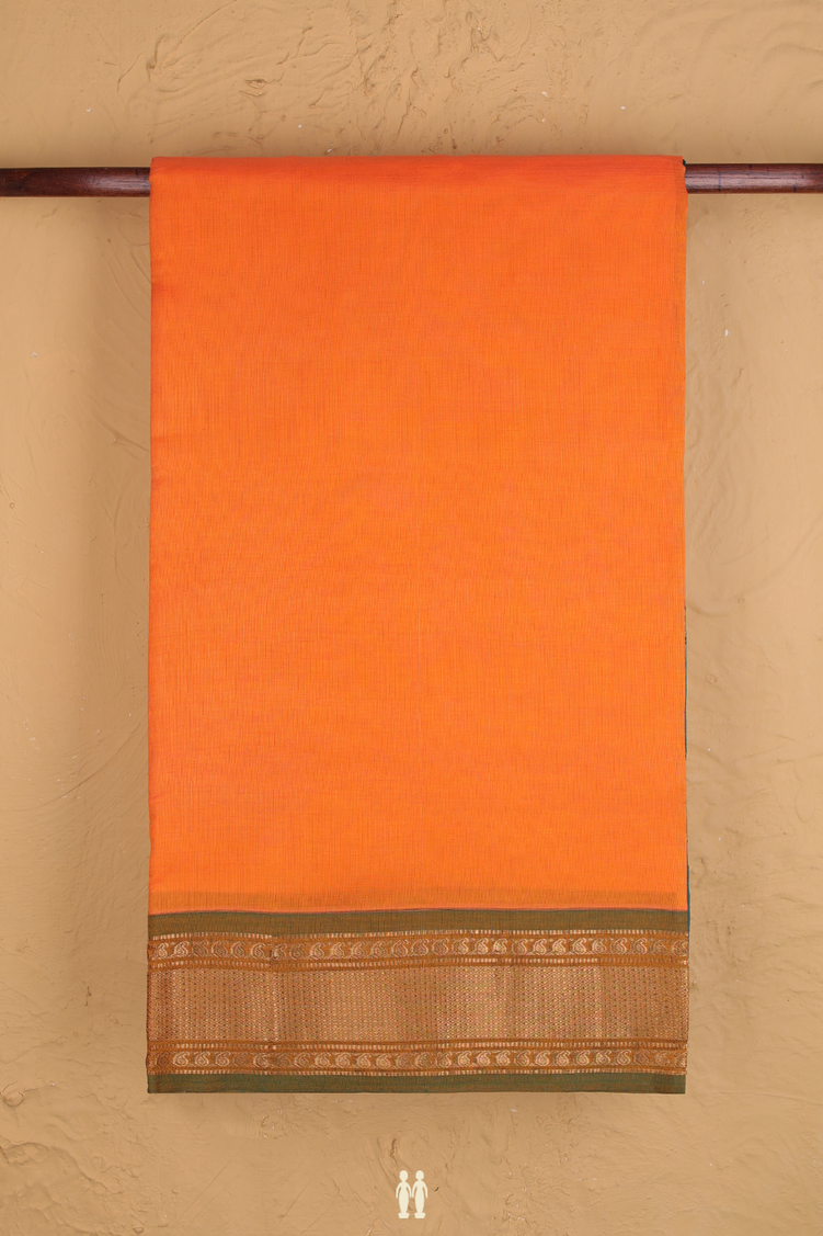 Semi Silk Cotton Saree In Orange With Zari Border