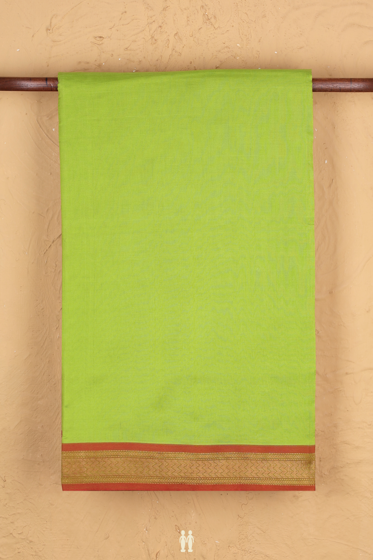 Semi Silk Cotton Saree In Parrot Green With Contrast Border
