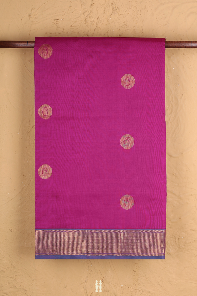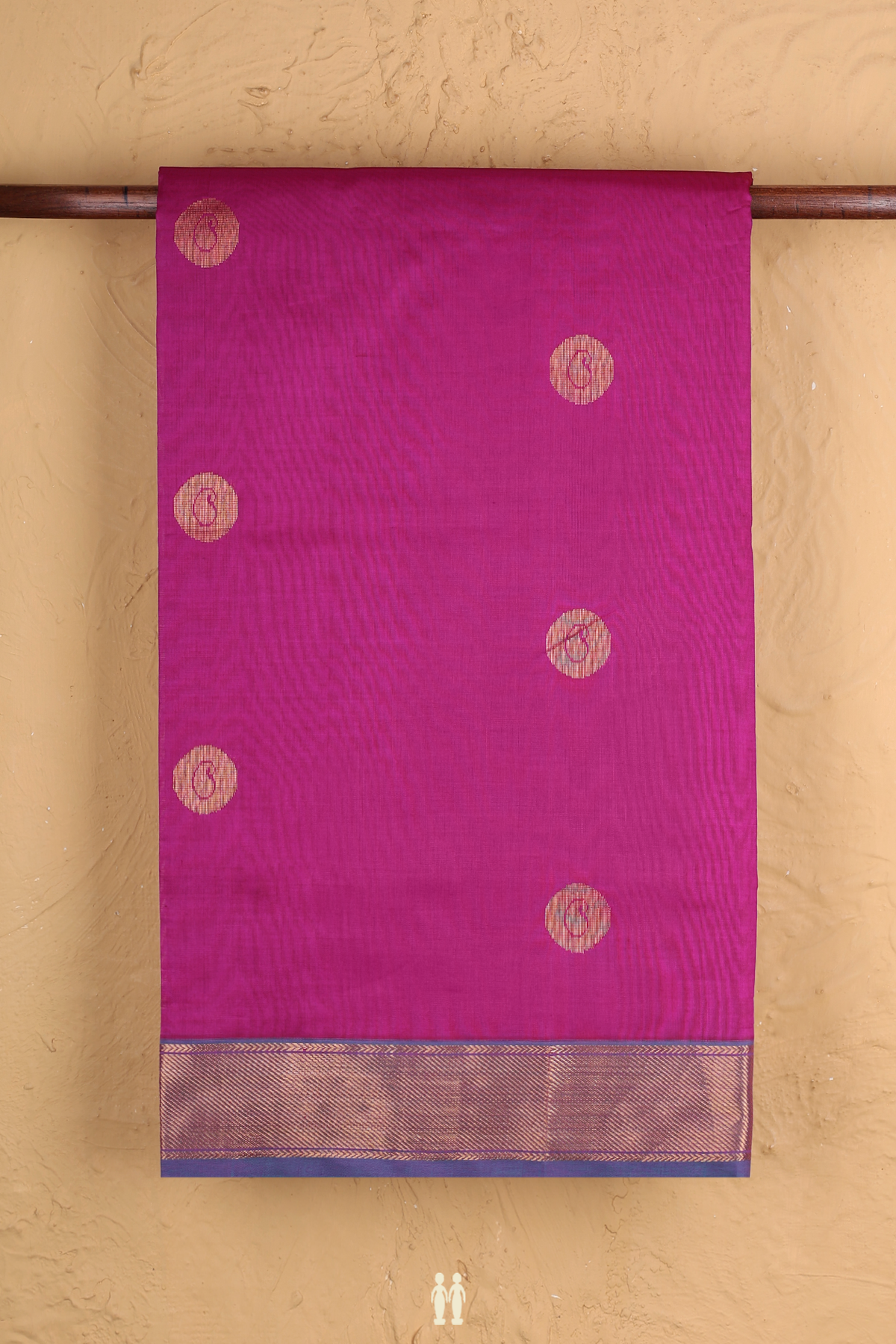 Semi Silk Cotton Saree In Purple Rose With Paisley Buttas