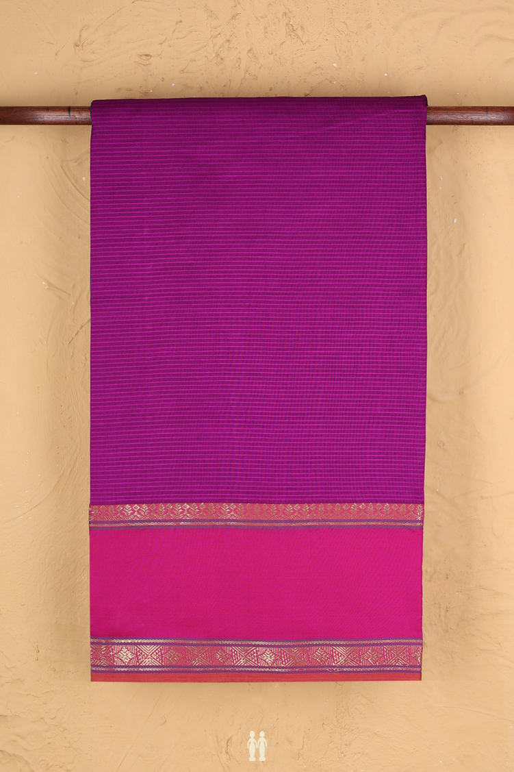 Semi Silk Cotton Saree In Purple Rose With Stripes Design