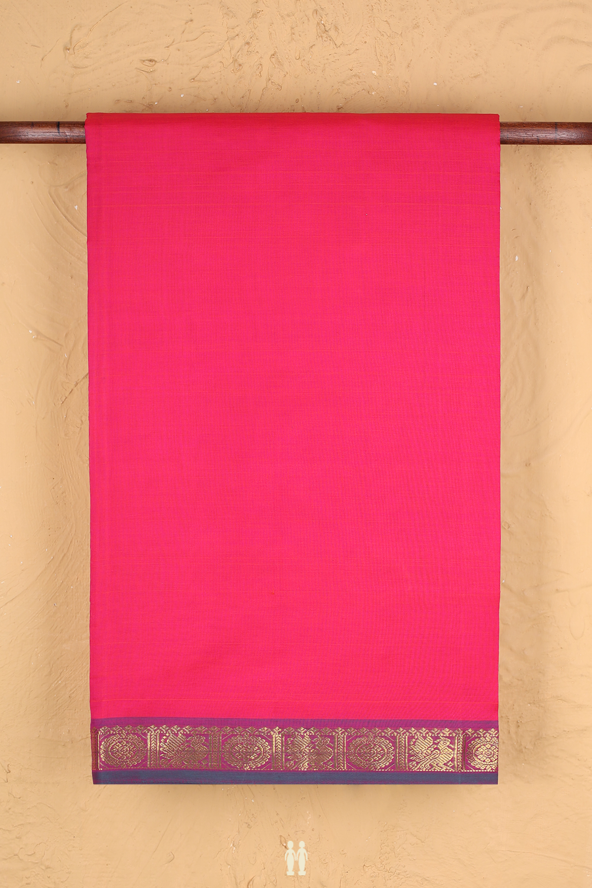 Semi Silk Cotton Saree In Rani Pink With Contrast Border