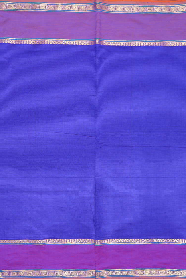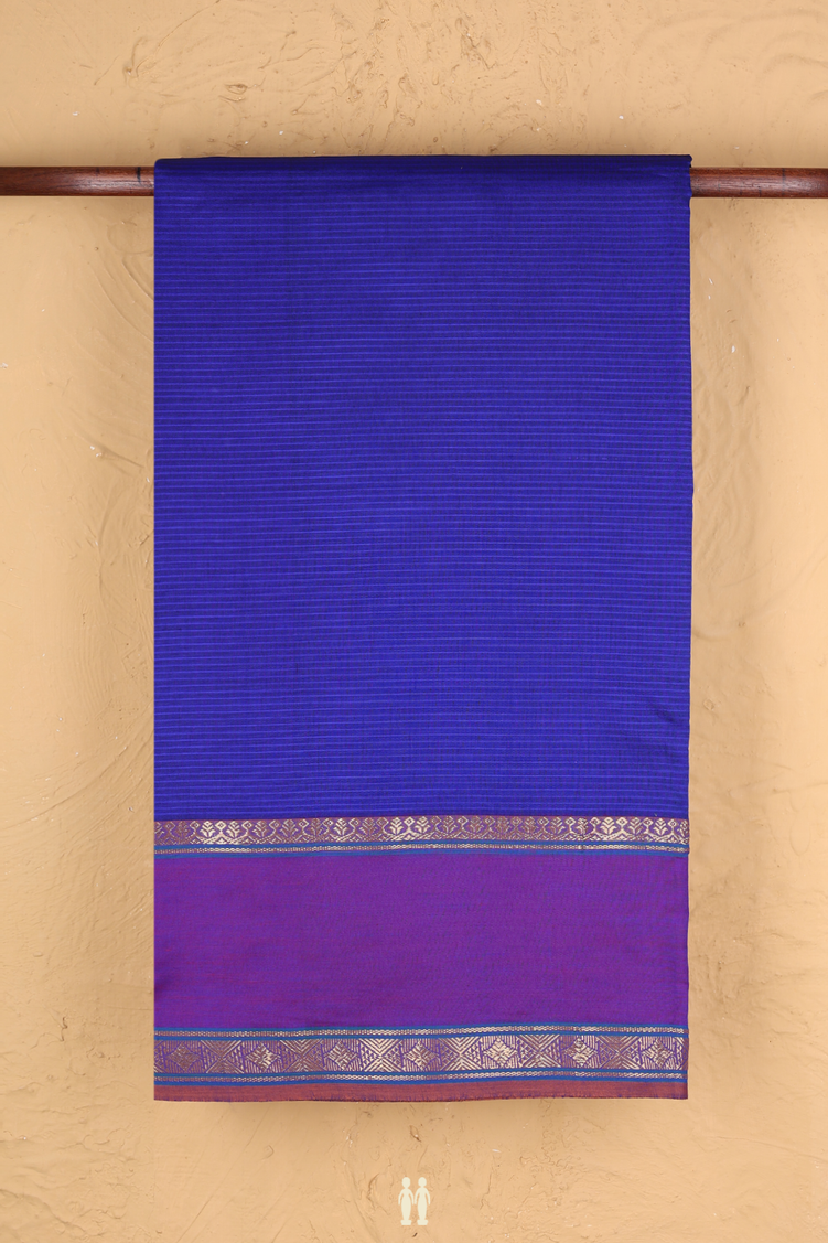 Semi Silk Cotton Saree In Royal Blue With Stripes Design