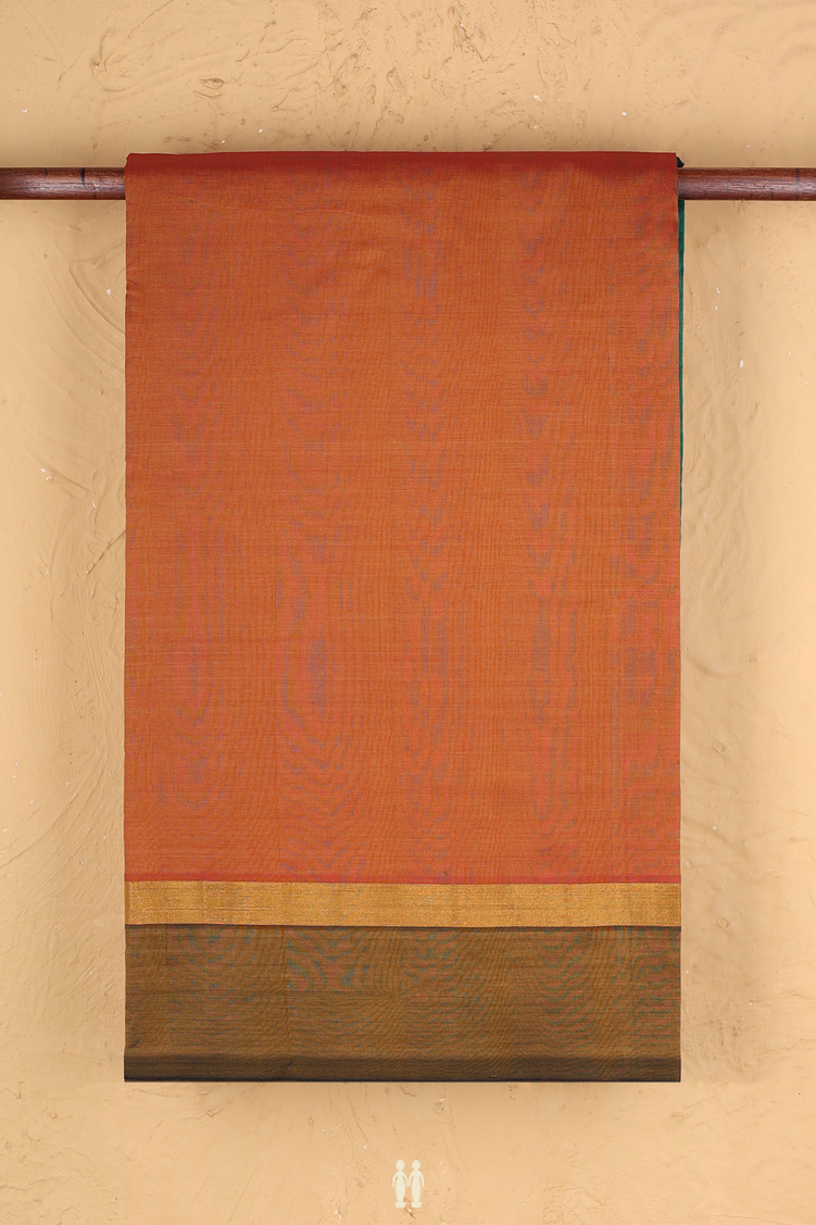 Semi Silk Cotton Saree In Saddle Brown With Contrast Border