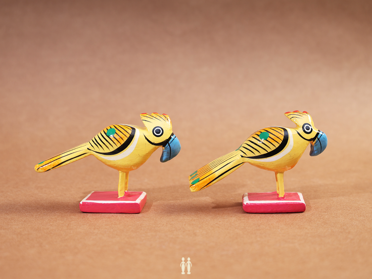 Set Of 2 Wooden Handicraft Multicolor Birds For Showpiece