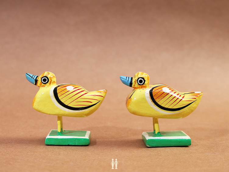 Set Of 2 Wooden Handicraft Multicolor Duck For Showpiece