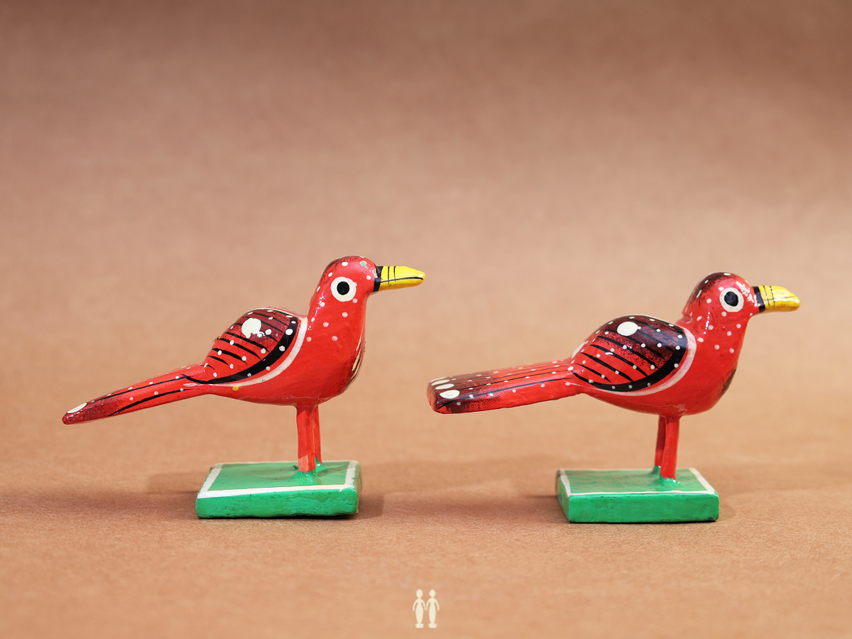 Set Of 2 Wooden Handicraft Multicolor Birds For Showpiece