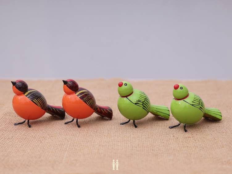 Set Of 4 Wooden Handicraft Multicolor Birds For Showpiece