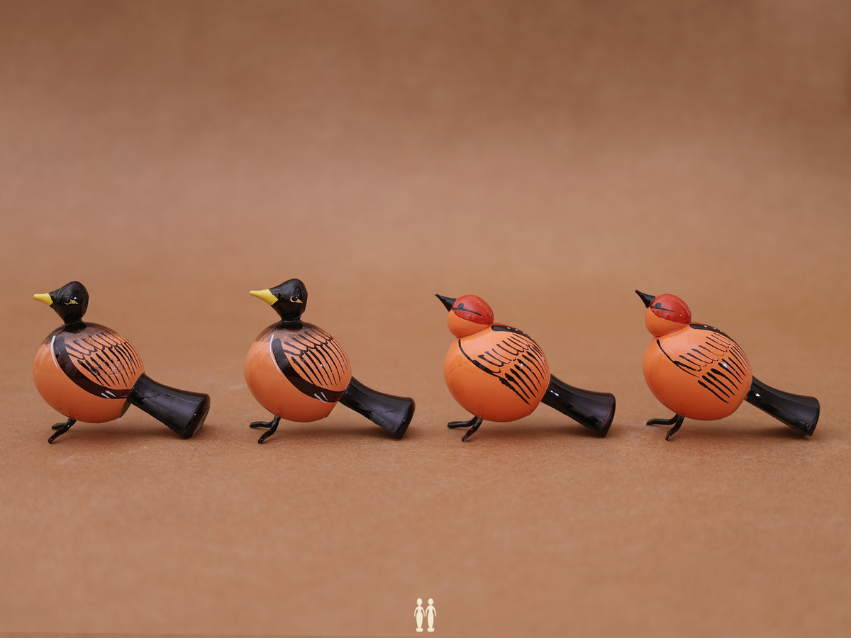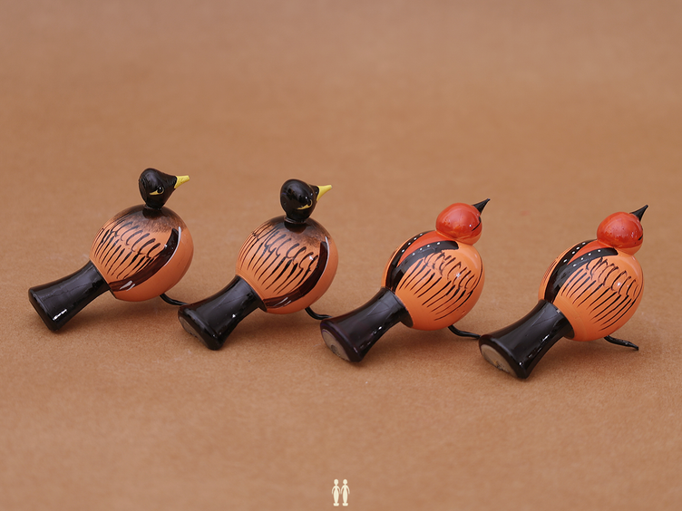 Set Of 4 Wooden Multicolor Birds For Showpiece