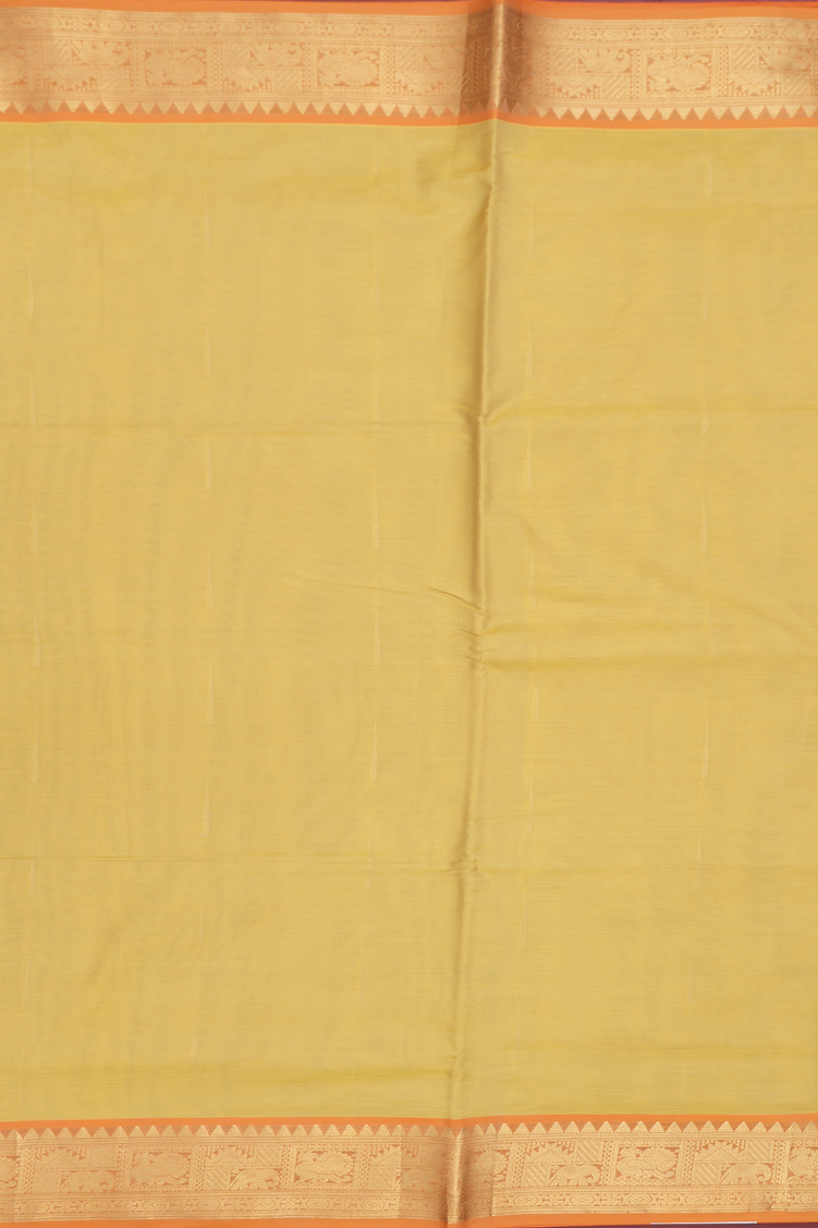 Silk Cotton Saree Celery Yellow With Malli Moggu Buttas