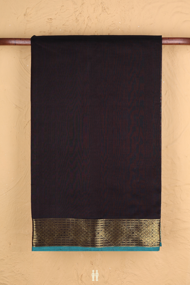 Silk Cotton Saree In Black With Zari Border