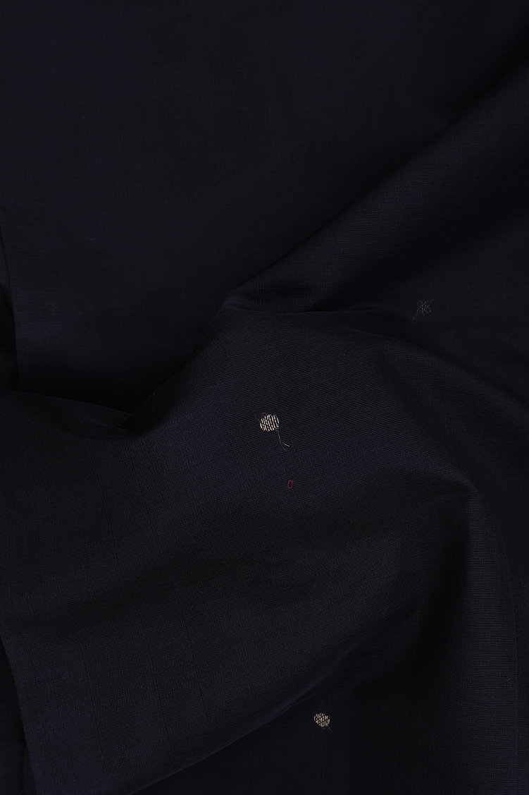 Elevate your ethnic wardrobe with this exquisite silk cotton saree in deep black, adorned with intricate zari buttis that catch the light with understated elegance. The harmonious blend of silk and cotton creates a fabric that drapes beautifully while offering comfort for all-day wear. Perfect for festive occasions, celebrations, or refined everyday styling, this saree embodies timeless sophistication. The delicate gold zari embellishments add a touch of opulence without overwhelming the classic black canvas, making it a versatile choice for the discerning wearer.